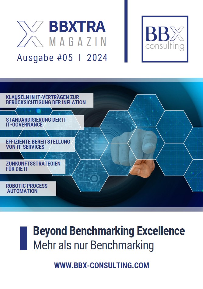 Das BBXTRA Magazin ist ein kompaktes, praxisorientiertes Fachmagazin rund um die Themen IT-Strategie, IT-Services, IT-Organisation und IT-Prozesse und natürlich Benchmarking. Es bietet Entscheidern wertvolle Einblicke, neue Impulse und Best Practices – klar strukturiert, leicht verständlich und direkt aus der Praxis.